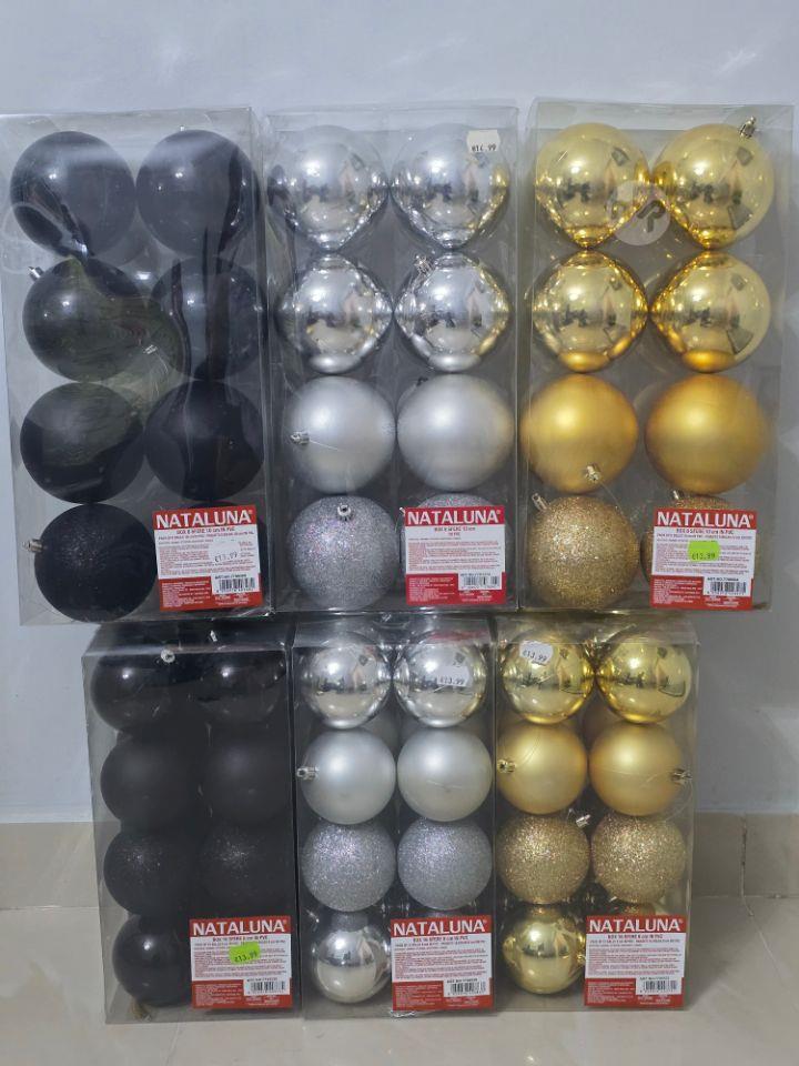 6 sets of Nataluna baubles, in black, gold and silver. Each set originally costs €13.99.