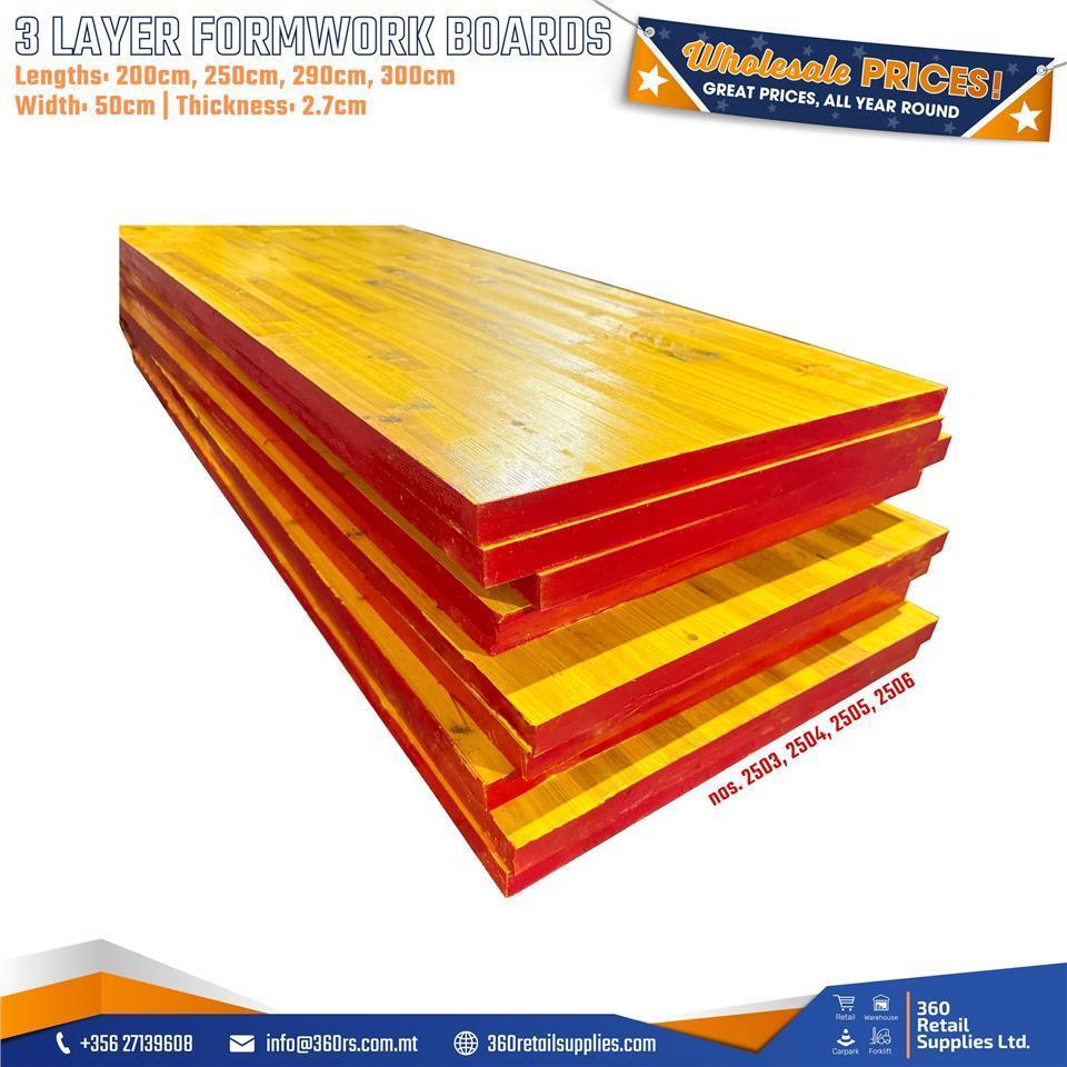 🟧 3-Layer Formwork Boards – Available Sizes: