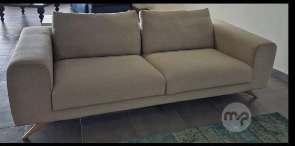 Large 2-Seater Sofa Beige Fabric, Wooden Legs