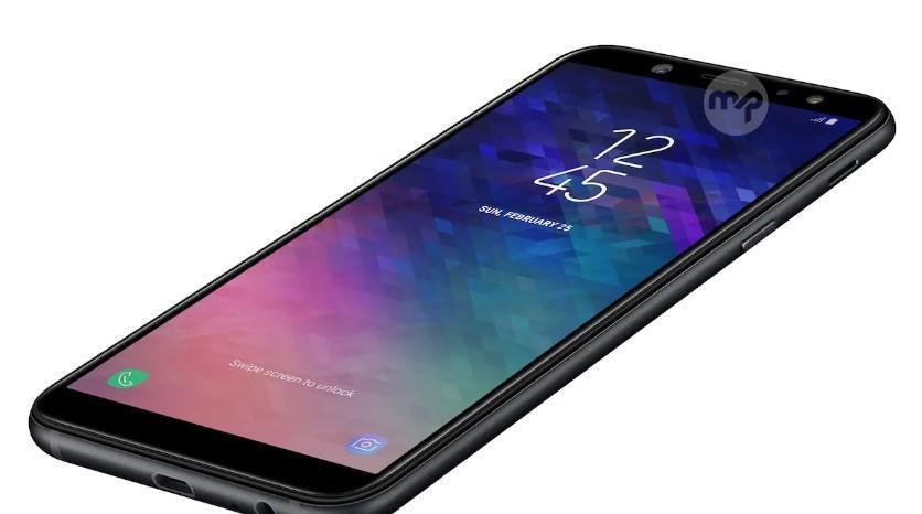 Samsung Galaxy A6+ Mobile in mint condition complete with leather cover, USB cable connection, and original box.
