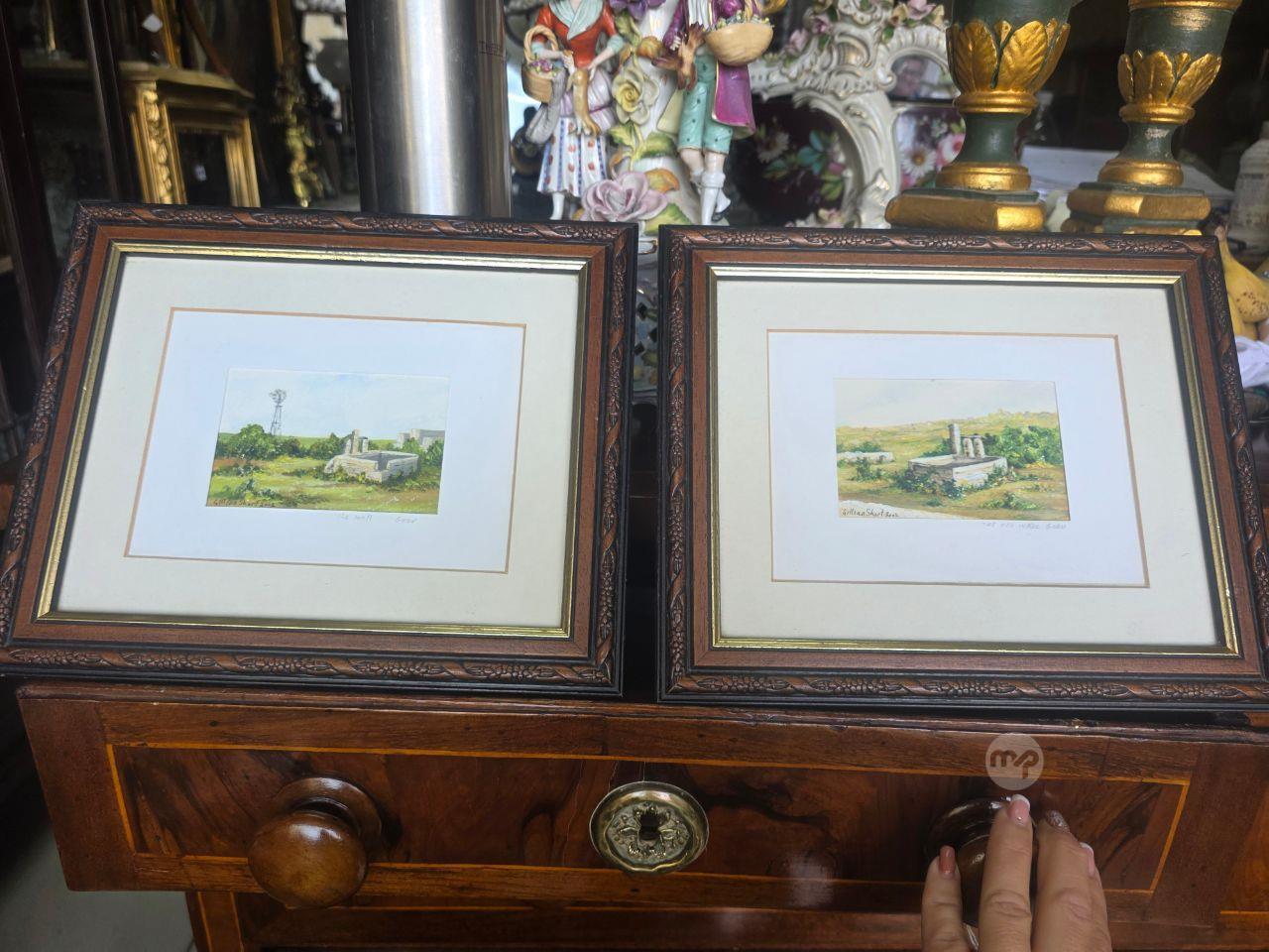 Two Old watercolours ' The Old Well Gozo' Framed,signed and dated. 90 euros Both