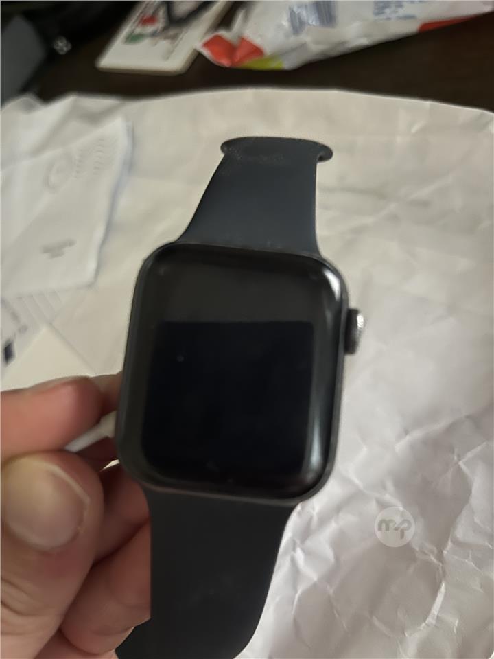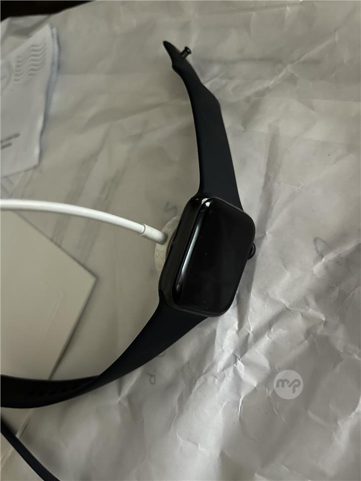 Used Apple Watch SE in good condition with charger wire and black rubber strap.