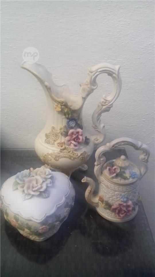CERAMIC VASE & HEART BOWLO & TEA POT