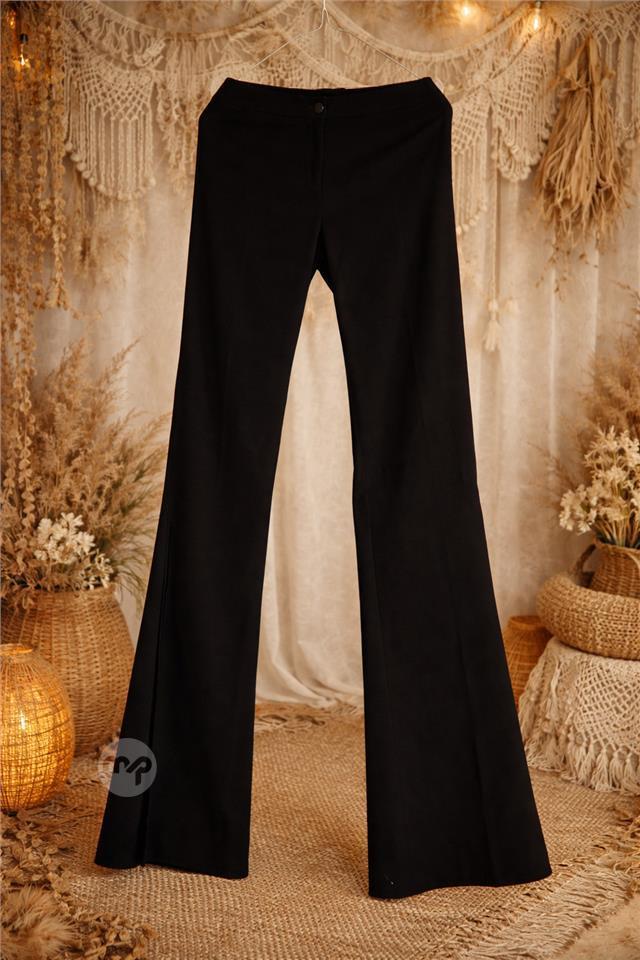Classic black wide-leg trousers with a clean, minimalist design. Made from a soft, comfortable fabric that falls smoothly and creates an elegant silhouette. The fitted waist and slightly flared legs flatter the figure and are ideal for everyday wear as well as more dressed-up occasions.
