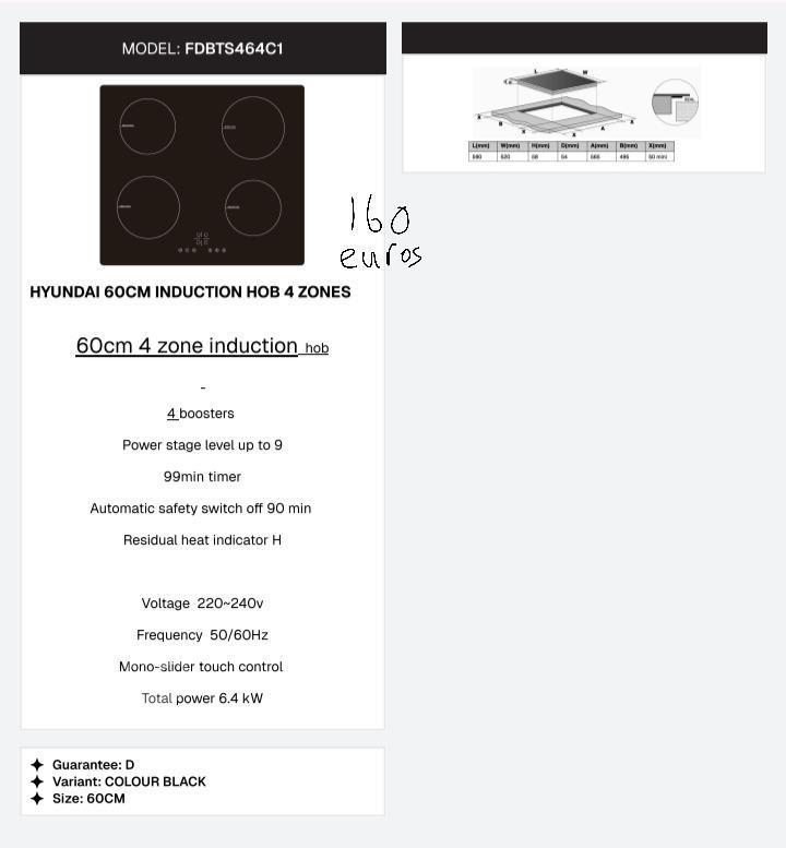 New Hyundai 60cm Induction hob 4 zones more info in the photo if interested send me on Messenger or WhatsApp on 99842654